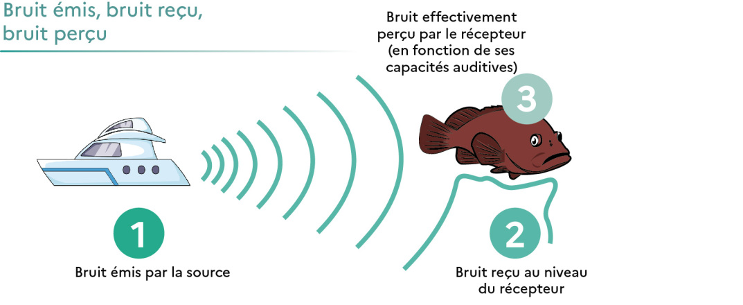 Pour évaluer le niveau de bruit, il est nécessaire de différencier le niveau de bruit émis, qui correspond au bruit généré par une source sonore, et le niveau de bruit reçu, qui correspond à ce même bruit arrivant au niveau d’un récepteur après avoir subi tous les phénomènes physiques qui contribuent à atténuer le signal. Le niveau de bruit reçu est donc généralement inférieur au niveau de bruit émis.