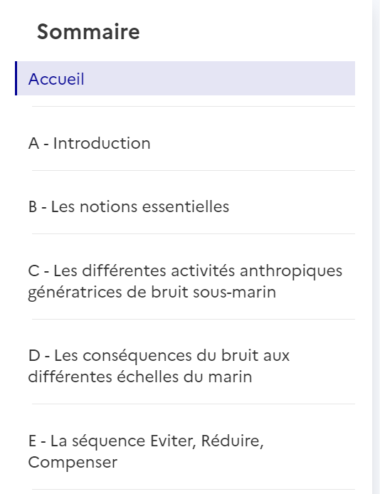 Le sommaire est le principal outil de navigation et de repérage de l'apprenant. Il est essentiel qu'il soit explicite sans être trop détaillé.