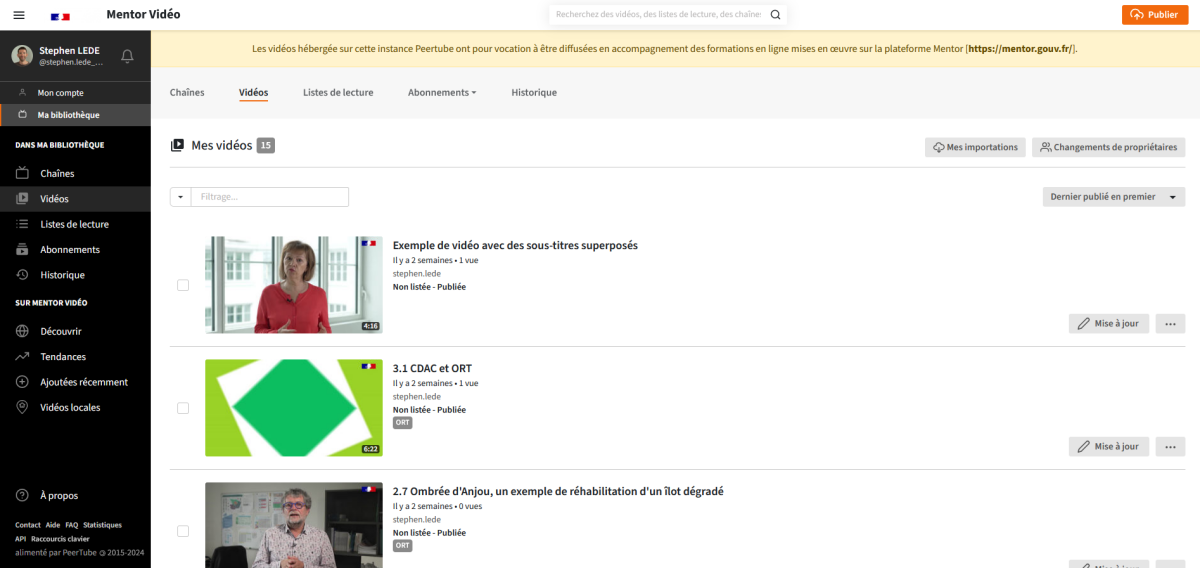 Toute vidéo diffusée sur Mentor doit donc être déposée sur Mentor Vidéo.